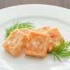 まろやかな味わいのカマンベール入りチーズを加えたしっとりとした口当たりのテリーヌです。 サーモンとチーズのひとくちテリーヌ