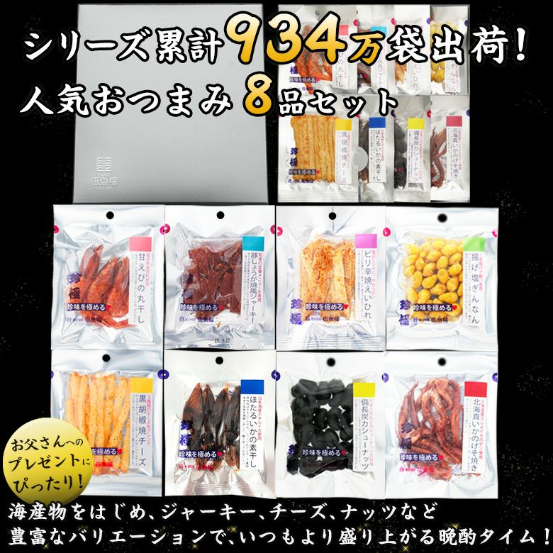 他の画像を見る 【珍味の伍魚福 大人気 おつまみ シリーズ セット】晩酌を楽しめる おつまみセット!ご自宅でのパーティー用にも! 【送料無料】珍味を極める8品セット 価格 ¥ 3,100 税込 販売期間 2025/03/01 0:00 〜 詳細を見る お気に入りに登録する