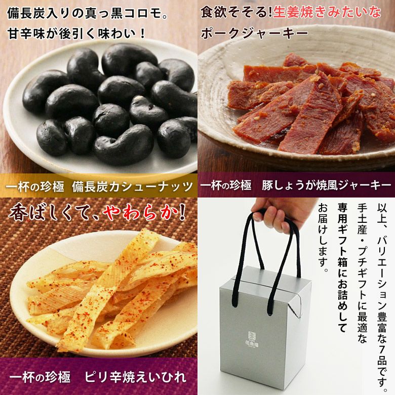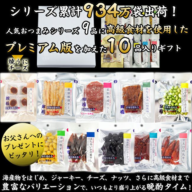 他の画像を見る 【高級食材を使ったプレミアム版入り】晩酌を楽しめる おつまみセット!ご自宅でのパーティー用にも! 【送料無料】黒毛和牛ジャーキー入り珍味を極める10品セット 価格 ¥ 3,850 税込 詳細を見る お気に入りに登録する