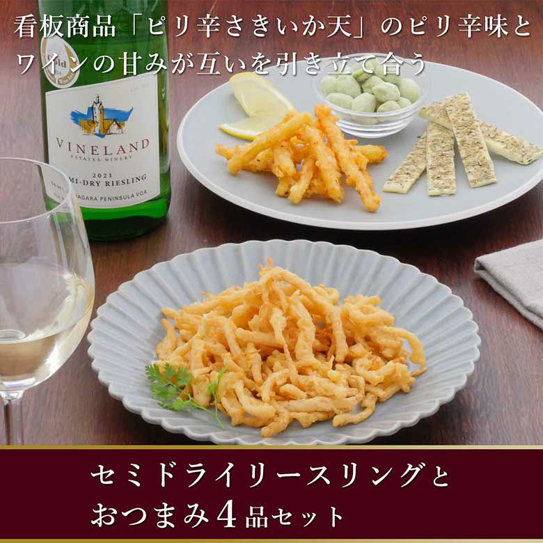 他の画像を見る 看板商品「ピリ辛さきいか天」のピリ辛味とワインの甘みが互いを引き立て合う 【送料無料】セミドライリースリングとおつまみ4品セット 価格 ¥ 6,800 税込 詳細を見る お気に入りに登録する