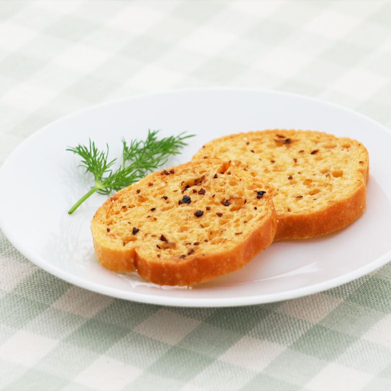 原材料名 パン(小麦粉、マーガリン、その他)(国内製造)、ショートニング、魚介エキス、黒オリーブ、ケーパー、ガーリックパウダー/調味料(アミノ酸等)、酸化防止剤(V.E、V.C)、香料、グルコン酸鉄、カロテン色素、(一部に乳成分、小麦、大豆を含む)