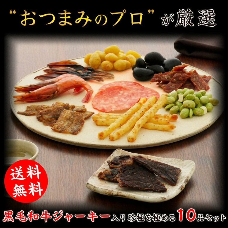 他の画像を見る 【高級食材を使ったプレミアム版入り】晩酌を楽しめる おつまみセット!ご自宅でのパーティー用にも! 【送料無料】黒毛和牛ジャーキー入り珍味を極める10品セット 価格 ¥ 3,850 税込 詳細を見る お気に入りに登録する