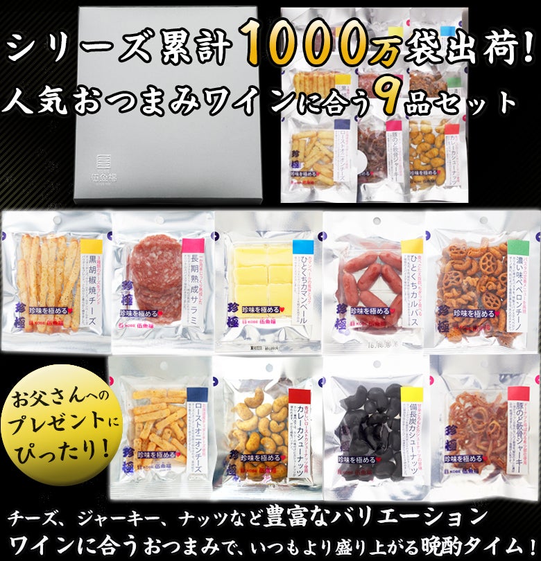 他の画像を見る 【珍味の伍魚福 大人気 おつまみ シリーズ セット】ワインを楽しめる おつまみセット! 【送料無料】チーズ&ナッツ&スナック系珍味を極める9品セット 価格 ¥ 3,450 税込 販売期間 2026/03/01 0:00 〜 詳細を見る お気に入りに登録する