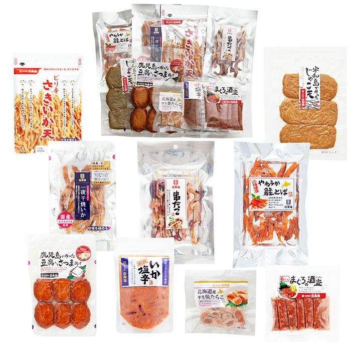 ちょっぴりお得!おつまみ専門店の魚介系おつまみ9品を詰め合わせました。